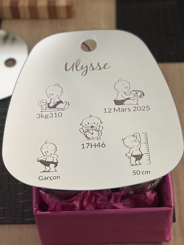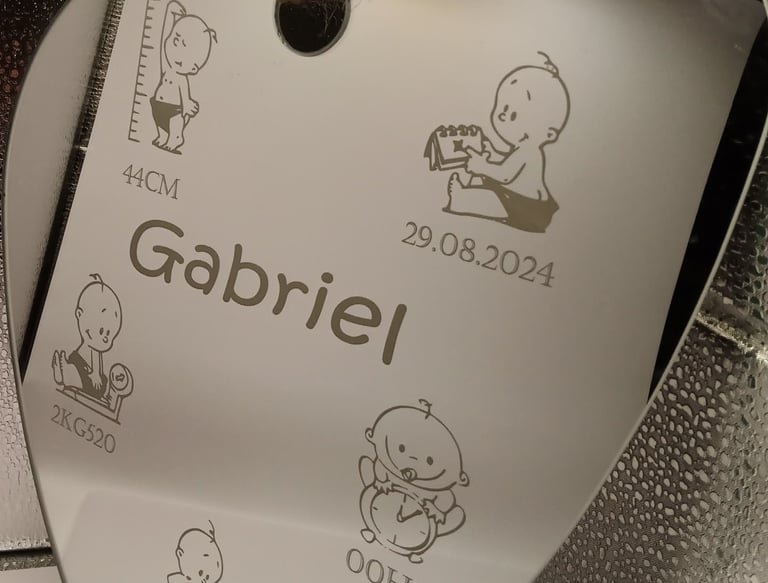 Un service exceptionnel, des gravures magnifiques sur miroir, pour la naissance de notre petit Gabriel. Je recommande vivement Art Gravure Daniel !